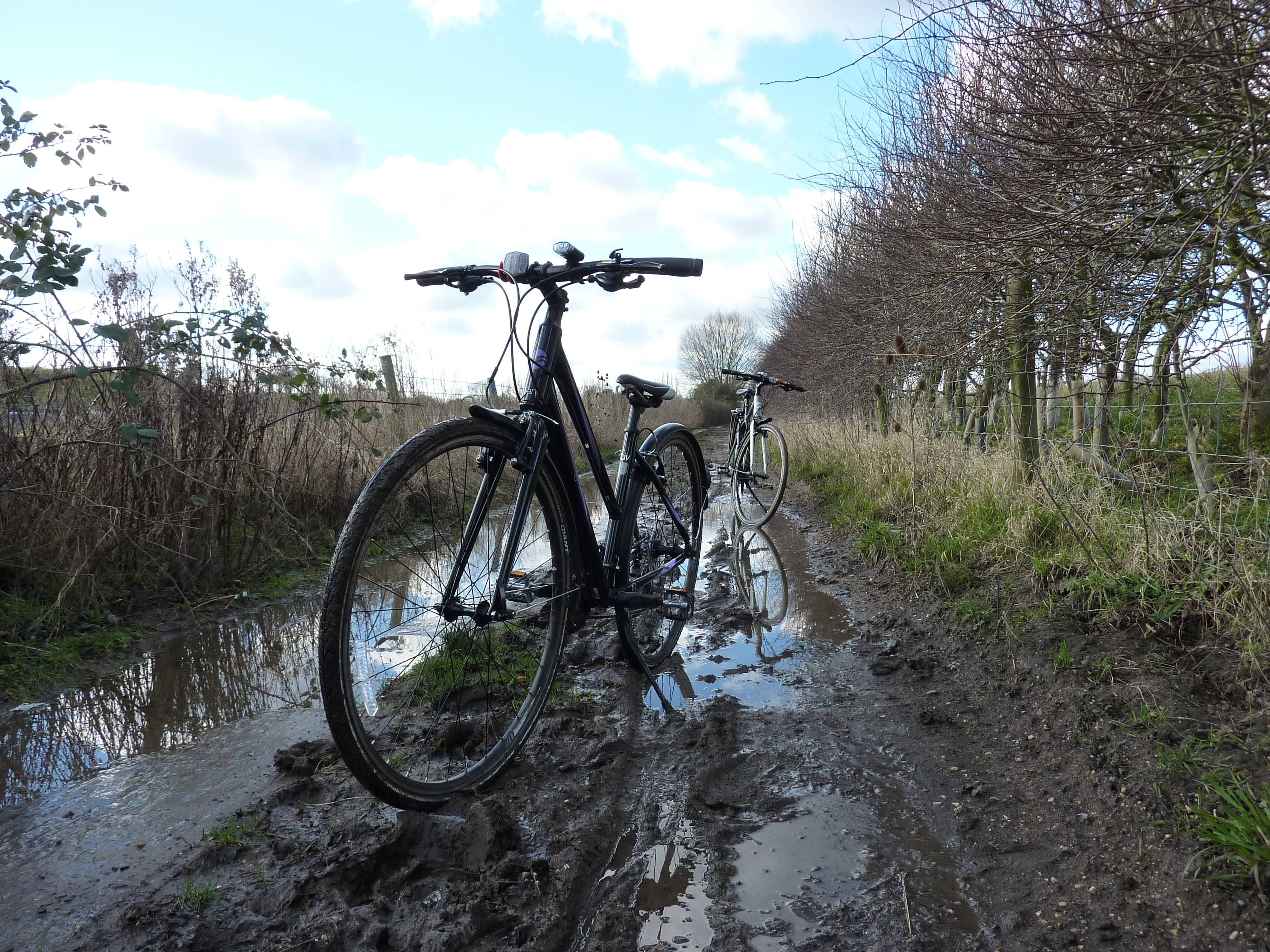 Soon we could see Didcot Power Station up ahead.  One more wrong turn to go and we would be there.  This wrong turn was down a path that appeared to comprise mostly of water filled pot holes the size of craters finally becoming impassable with thick mud.  We turned back.